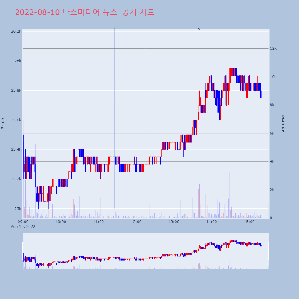 | 8 | '하이록코리아' 52주 신고가 경신, 단기·중기 이평선 정배열로 상승세◆ 차트 분석- 단기·중기 이평선 정배열로 상승세 | 한경/증권 | 하이록코리아 | 2022-08-09 10:36:05 |