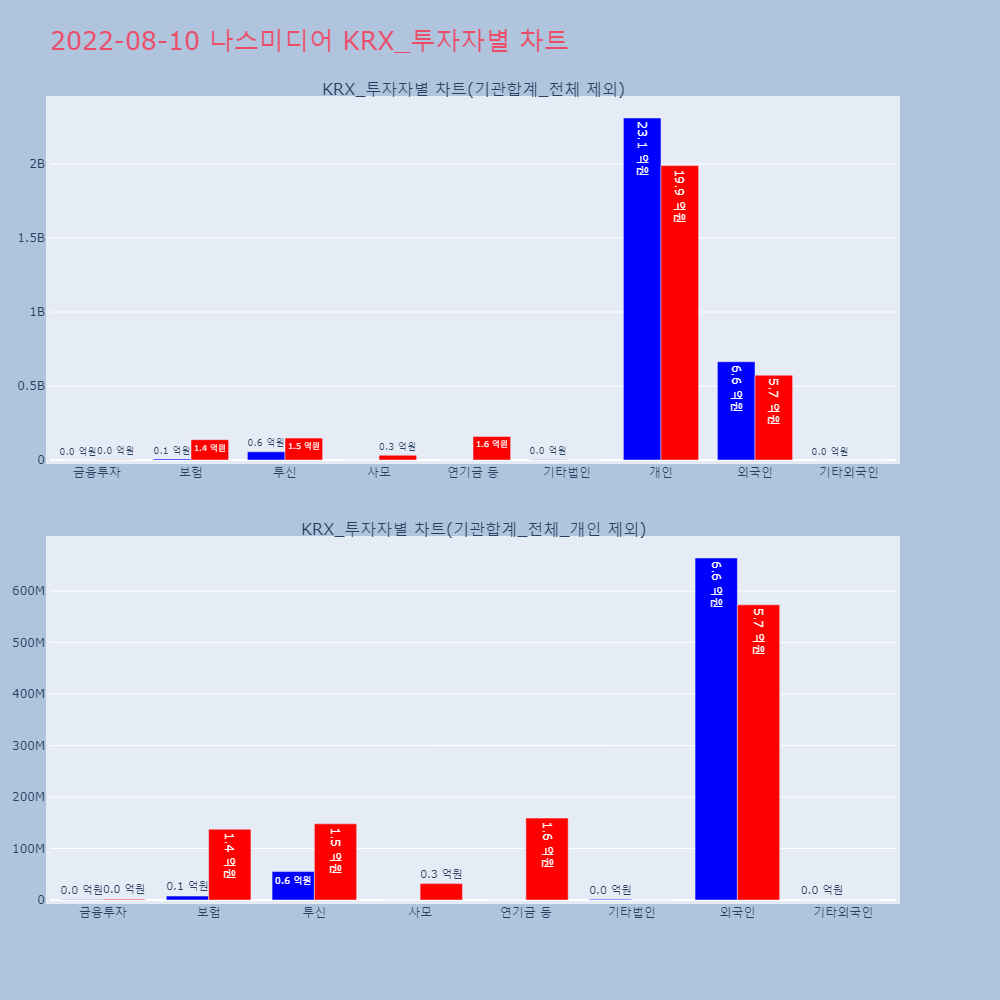 | 개인 | 62,207 | 28,583 | -33,624 | 7,802,649,000 | 3,579,689,500 | -4,222,959,500 |