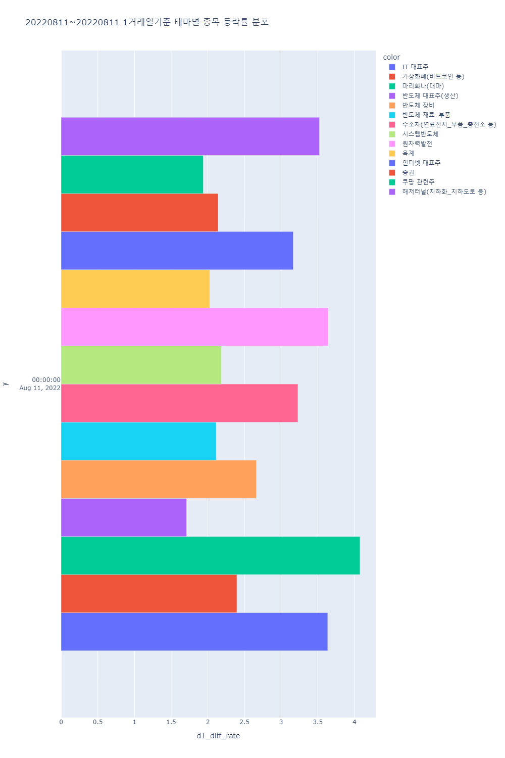 ▷이 외 선박평형수 처리장치, 남-북-러 가스관사업, 전력저장장치(ESS), 야놀자 관련주, 미용기기, LED장비, 타이어, 철강 중소형, 우크라이나 재건 관련주, 전자결제(전자화폐), 음원/음반, 철도, NFT, 카카오뱅크 관련주, 웹툰, 전력설비, 은행 등의 테마가 상승률 상위를 기록하는 등 대부분 테마가 상승.