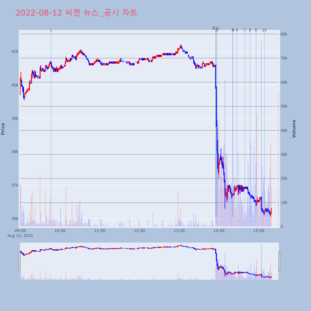 | 3 | [잠정실적]씨젠 2Q 실적, 영업이익 130억원 전년동기 대비 -91% (연결) [서울=뉴스핌] 로보뉴스 = 씨젠의 영업이익률이 전년동 | 뉴스핌 | 씨젠 | 2022-08-12 13:57:11 |