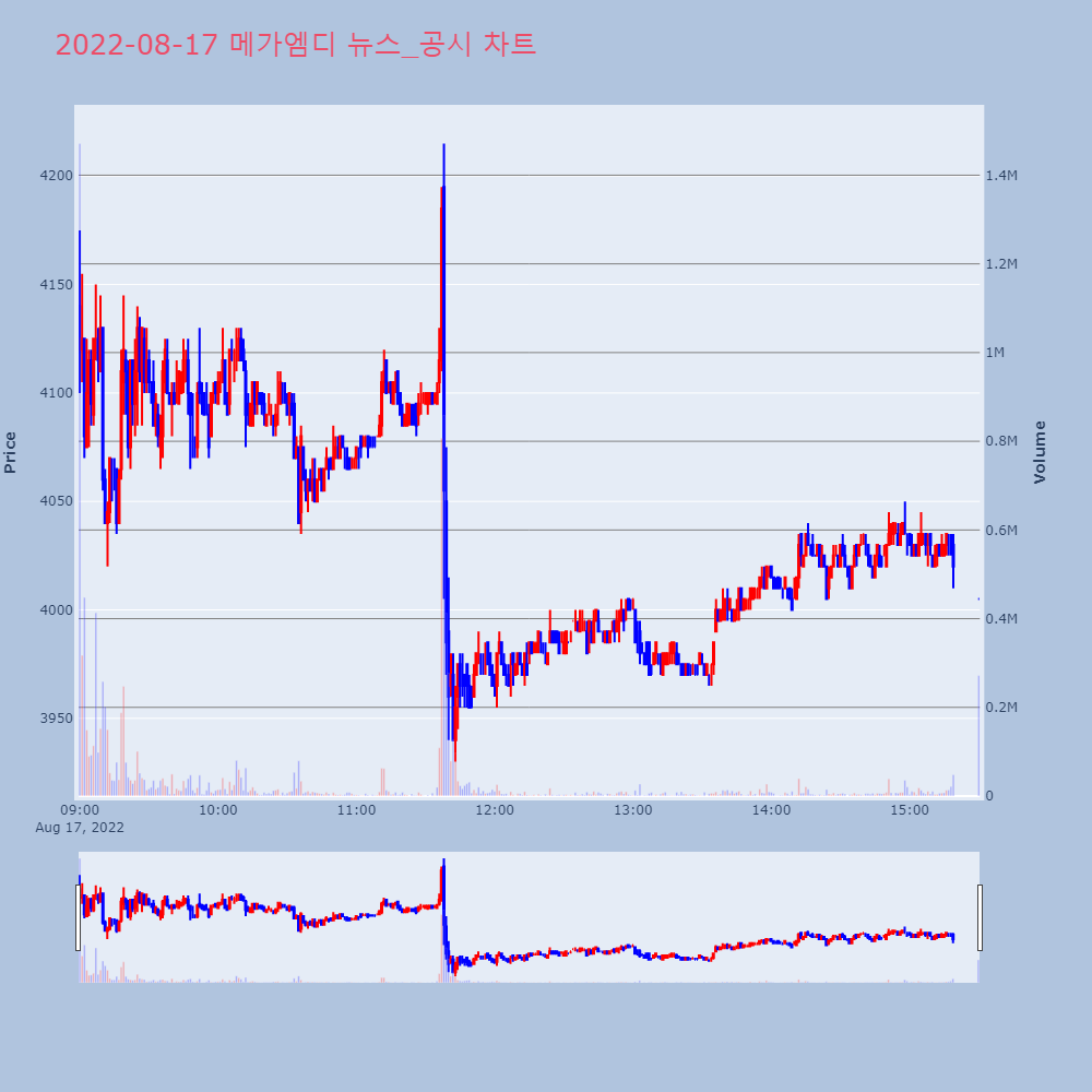| 2022-08-17 16:26:00 | 20220817800295 | 단일판매ㆍ공급계약체결 |