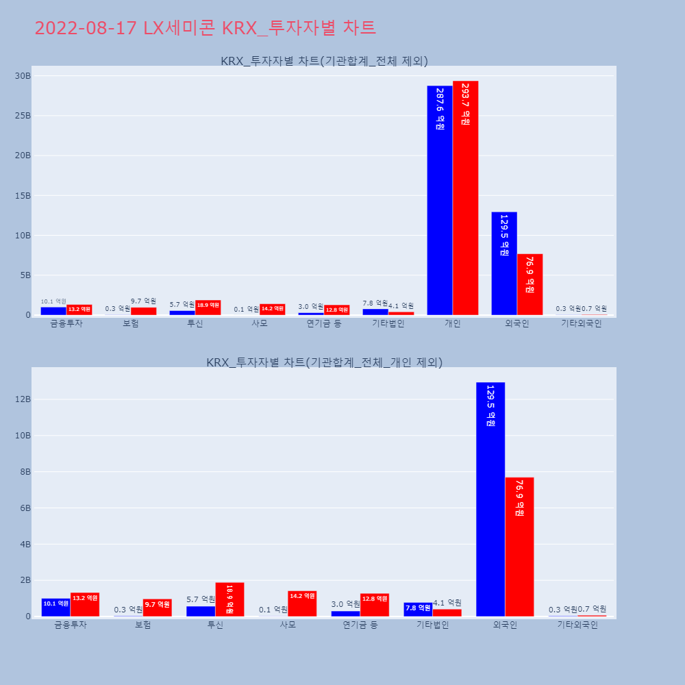 | 기관합계 | 257,128 | 117,918 | -139,210 | 17,756,546,100 | 8,199,509,200 | -9,557,036,900 |