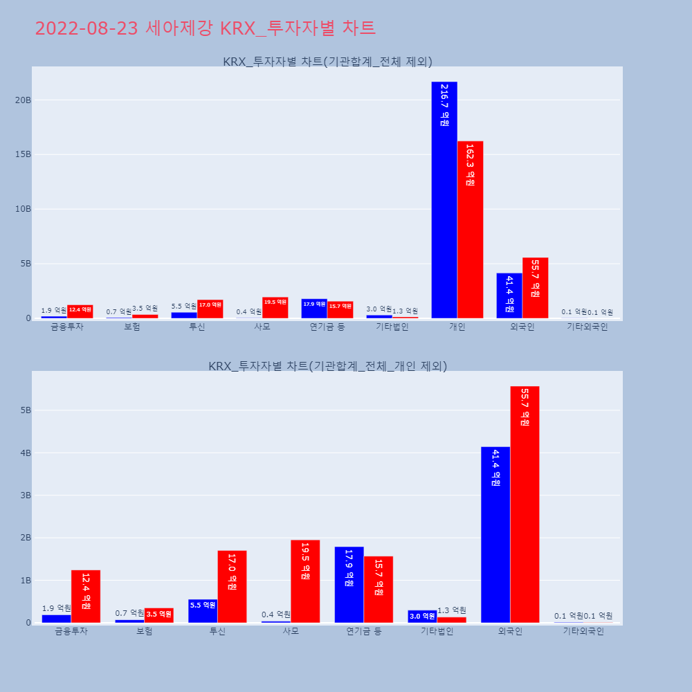 | 개인 | 113,483 | 85,061 | -28,422 | 21,669,244,500 | 16,231,513,000 | -5,437,731,500 |