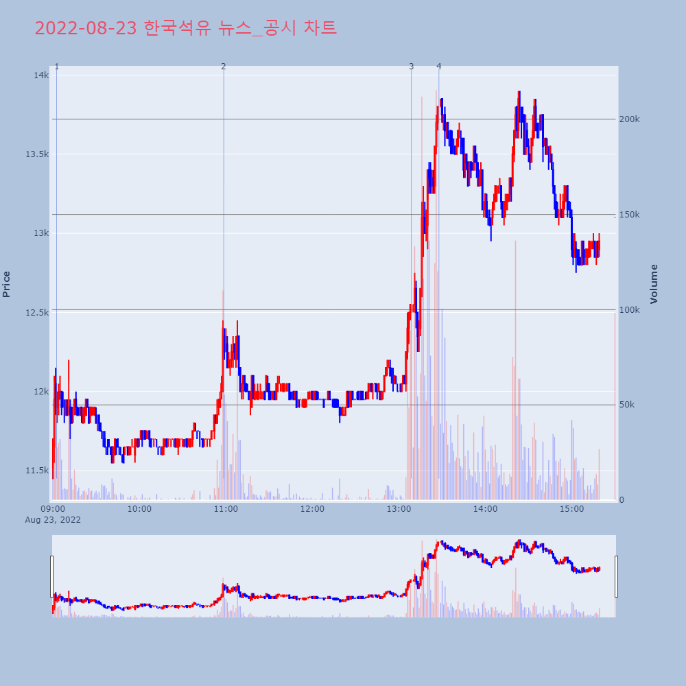 | 3 | [강세 토픽] 유가 상승 수혜 - 유류도소매 테마, 중앙에너비스 +12.15%, 흥[유가 상승 수혜 - 유류도소매] 테마가 강세다. 전일 | 조선경제 | 중앙에너비스 | 2022-08-23 09:06:30 |