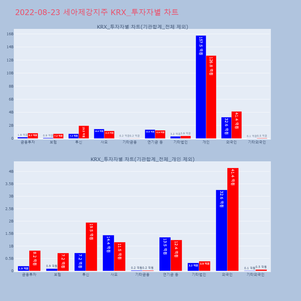 | 개인 | 84,583 | 67,896 | -16,687 | 15,754,922,500 | 12,677,553,000 | -3,077,369,500 |