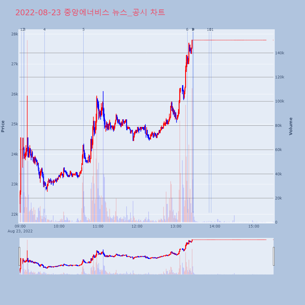 | 8 | 중앙에너비스(000440) 상한가 진입 제목 : 중앙에너비스(000440) 상한가 진입 기업개 | 인포스탁 | 중앙에너비스 | 2022-08-23 13:26:28 |