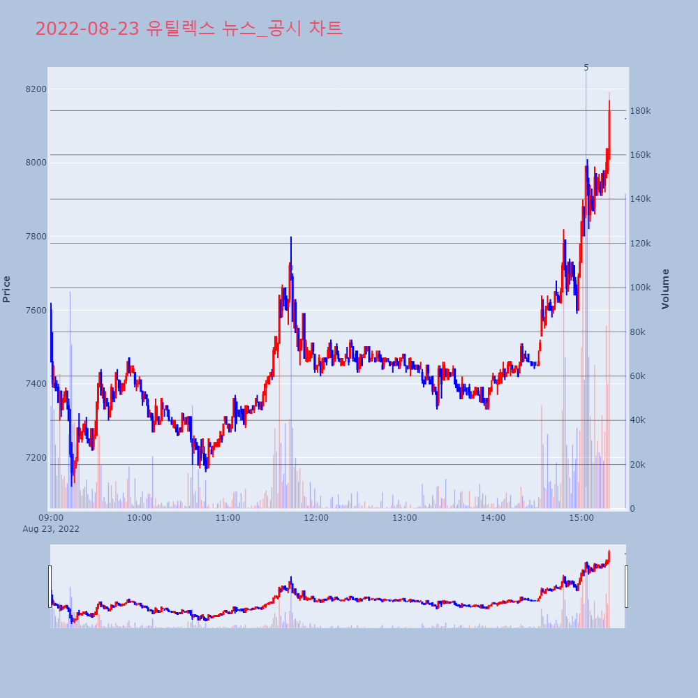 2 | 유틸렉스, +9.06% VI 발동유틸렉스가 VI가 발동했다. 전일 대비 9.06% 상승 | 조선경제 | 유틸렉스 | 2022-08-22 09:06:15 |