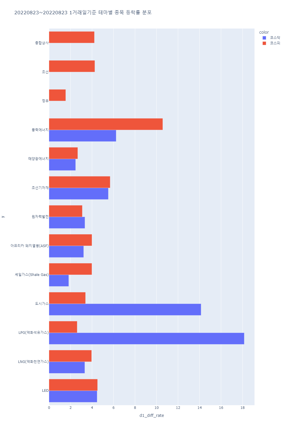 | ▷美 인플레감축법(IRA) 수혜 분석 및 에너지 불안에 따른 신재생에너지 도입 가속화 기대감 등에 풍력에너지/태양광에너지 테마 상승. 태양광에너지 테마는 中 전력난에 따른 태양광 부품 생산 공장 중단 소식 등도 긍정적으로 작용. ▷美 천연가스 가격 급등 등에 도시가스/LNG/셰일가스/종합상사 테마 상승. ▷사우디 감산 가능성 등에 정유/LPG(액화석유가스) 테마 상승. ▷저가수주 주범 '초대형 유조선(VLCC)' 비중 감소에 따른 조선사 수익성 개선 기대감 등에 조선/조선기자재 테마 상승. ▷황주호 한수원 신임사장, 원전 10기 수출 등 원전 강국 목표 등에 원자력발전 테마 상승. ▷경북 영주시, 야생 멧돼지 ASF 첫 확인 소식에 일부 아프리카 돼지열병(ASF) 테마 상승. ▷2027년까지 형광등 퇴출 소식에 일부 LED 테마 상승. ▷UAM 시장 개화 기대감 지속 등에 UAM(도심항공모빌리티) 테마 상승. ▷인도 밀 재고량 13년 내 최저치 기록에 따른 밀 수입 관세 인하·폐지 방안 검토 소식 등에 전일에 이어 일부 농업/사료/비료 테마 상승. ▷이 외에 강관업체, 남-북-러 가스관사업, 아스콘, 전선, 철강 중소형, 전력설비 등의 테마가 상승률 상위를 기록. ▷반면, 쏘카 상장 이틀째 공모가 회복 실패 소식 및 컬리, 한국거래소 상장 예비심사 통과 소식 속 몸값 거품 논란 등에 마켓컬리 관련주 하락. ▷국내 증시 부진 등에 증권 테마 하락. ▷Fed 공격적 긴축 우려 지속 등에 따른 美 나스닥, 필라델피아 반도체지수 급락, 8월 반도체 수출 역성장 우려 지속 등에 반도체/IT 대표주 하락. ▷정부 당국 확진자 금주~내주 감소세 전환 전망 등에 코로나19(진단/치료제/백신 개발, 음압병실/음압구급차 등) 등 코로나19 관련 테마 하락. ▷이 외에 원숭이두창, 마이크로바이옴, 웹툰, 유전자 치료제/분석, mRNA(메신저 리보핵산), 일자리(취업), 음원/음반, 엔터테인먼트, 바이오시밀러, 토스 관련주 등 대부분의 테마가 하락. |