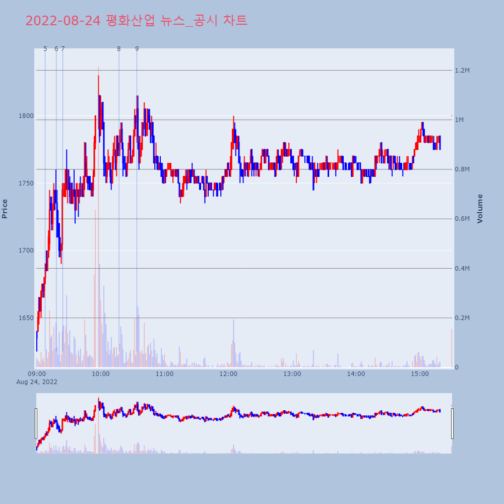 | 3 | 평화산업, +7.86% VI 발동평화산업이 VI가 발동했다. 전일 대비 7.86% 상승 | 조선경제 | 평화산업 | 2022-08-23 14:40:59 |