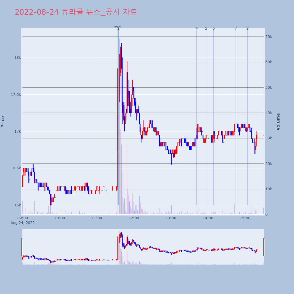 2 | 큐라클, +9.51% VI 발동큐라클이 VI가 발동했다. 전일 대비 9.51% 상승한 | 조선경제 | 큐라클 | 2022-08-24 11:34:55 |