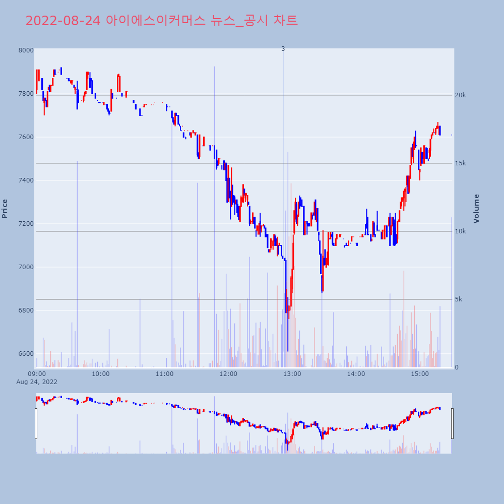| 3 | 아이에스이커머스, -10.55% VI 발동아이에스이커머스가 VI가 발동했다. 전일 대비 10.5 | 조선경제 | 아이에스이커머스 | 2022-08-24 12:51:34 |