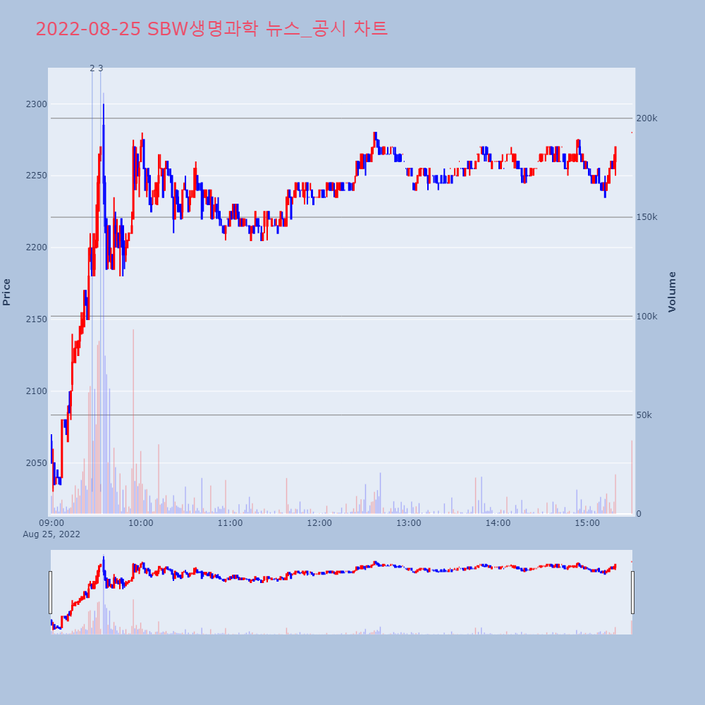 | 3 | SBW생명과학, +9.66% VI 발동SBW생명과학이 VI가 발동했다. 전일 대비 9.66% | 조선경제 | SBW생명과학 | 2022-08-25 09:33:02 |