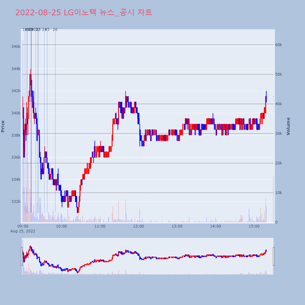 26 | LG이노텍, 테슬라에 1조원 대 부품 공급설에 강세 LG이노텍이 테슬라와 1조원 대 부품 공급에 대한 협 | 매일경제 | LG이노텍 | 2022-08-25 09:50:36 |