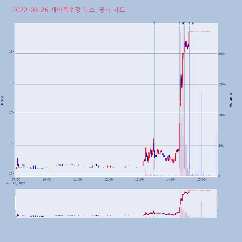 | 2022-08-26 16:17:00 | 20220826800392 | 조회공시요구(현저한시황변동) |