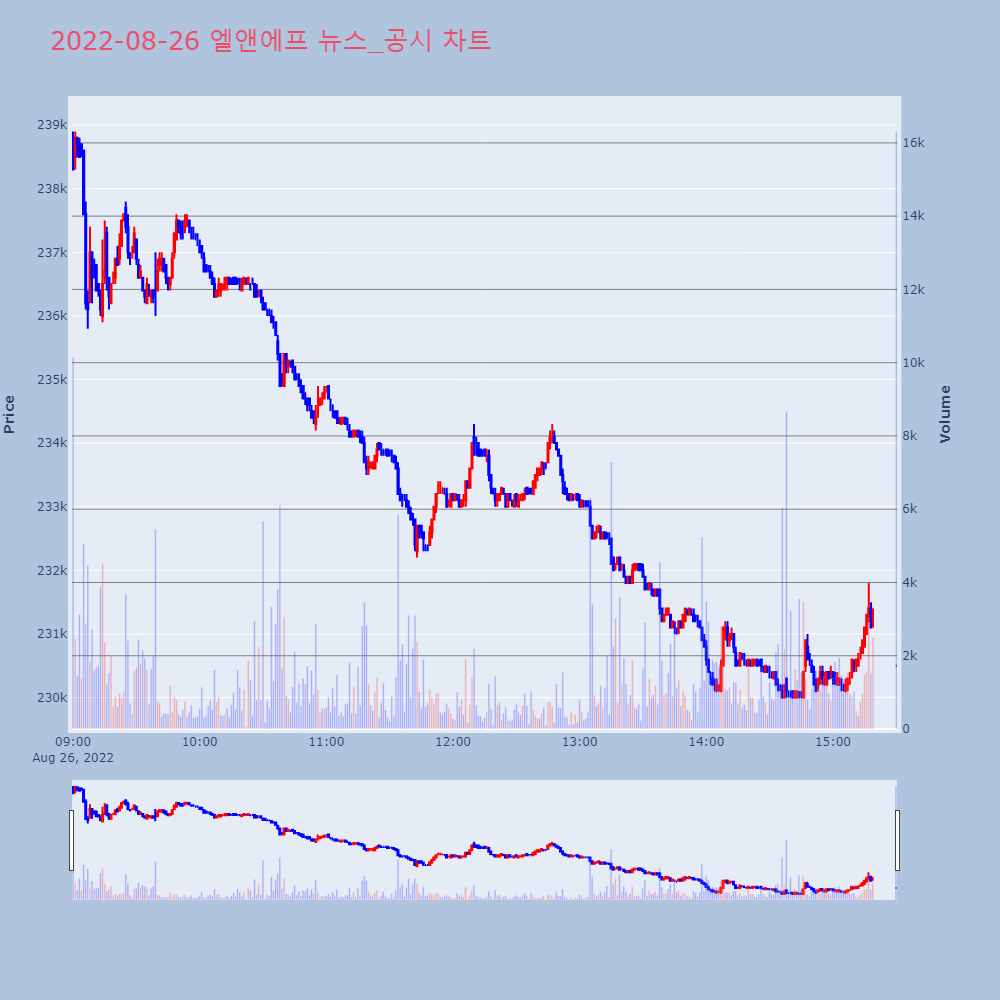 | 9 | 26일, 기관 코스닥에서 엘앤에프(-3.15%), 셀트리온헬스케어(-4.03%) 등 순기관 투자자는 26일 코스닥에서 엘앤에프, 셀트리온헬 | 한경/증권 | 엘앤에프 | 2022-08-26 18:35:31 |