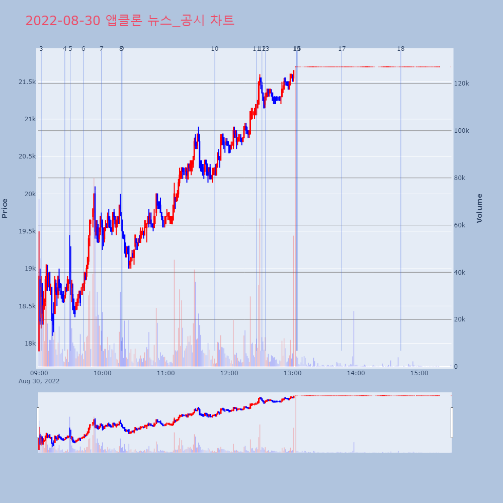 | 19 | [fnRASSI]오늘의 상한가, 앱클론 29.9% ↑ 30일 앱클론(174900)등이 상한가를 기록했다. 특 | 파이낸셜 | 앱클론 | 2022-08-30 15:39:31 |