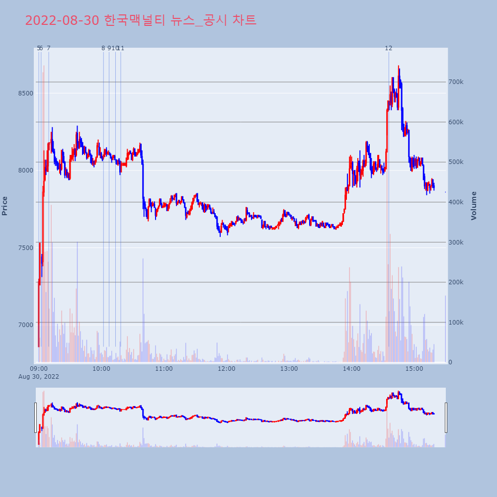 | 9 | [장초반 인기 검색 종목 PICK5] - 한국맥널티, 앱클론, 켐트로스... 최적의 매매타이밍을 실시간으로 전송하여 투자자들에게 도 | 파이낸셜 | 세아특수강 | 2022-08-30 10:18:39 |