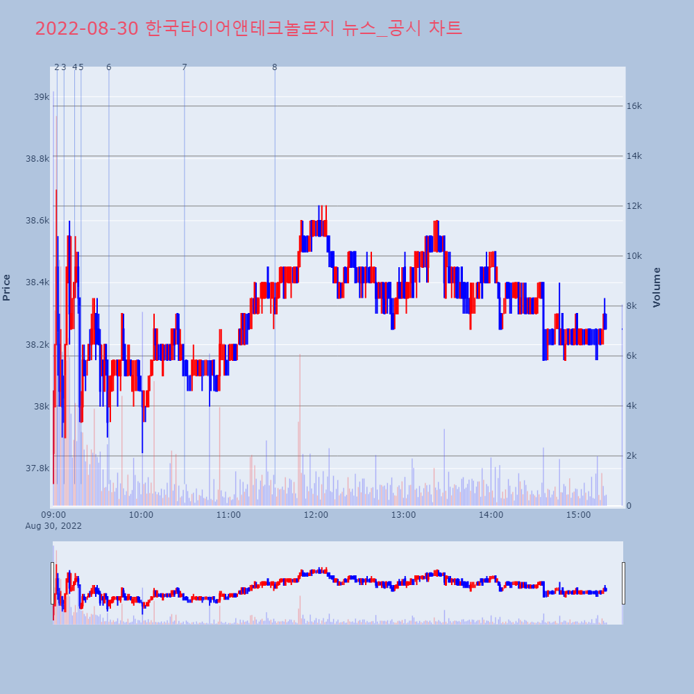 | 3 | 한국타이어앤테크놀로지, 테네시 공장 투자 발표에 강세- [특징주][이데일리 김소연 기자] 30일 장 초반 | 이데일리 | 한국타이어앤테크놀로지 | 2022-08-30 09:07:15 |
