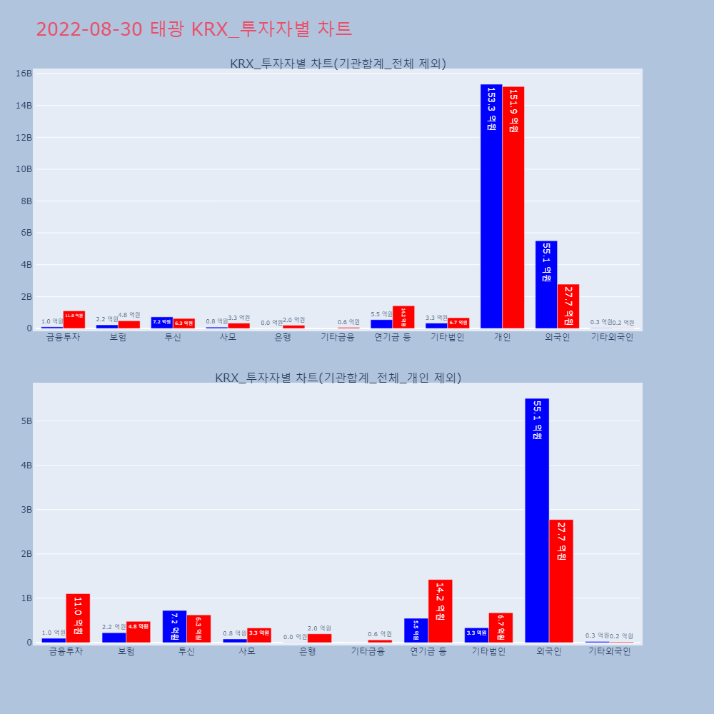 | 투자기관 | 거래량_매도 | 거래량_매수 | 거래량_순매수 | 거래대금_매도 | 거래대금_매수 | 거래대금_순매수 |