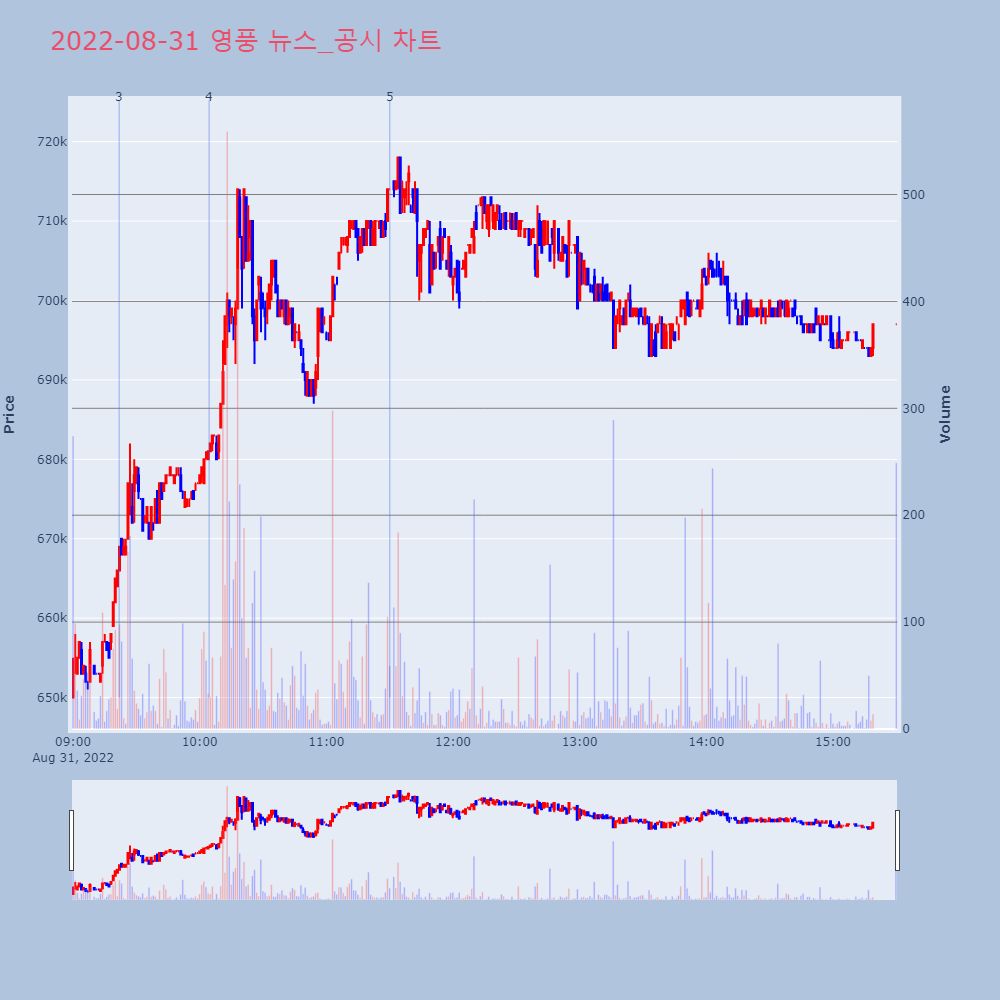 | 5 | 영풍, +13.33% VI 발동영풍이 VI가 발동했다. 전일 대비 13.33% 상승한 | 조선경제 | 영풍 | 2022-08-31 11:30:04 |
