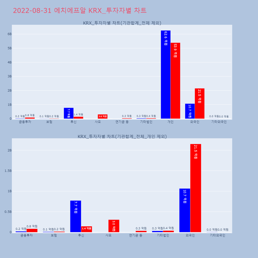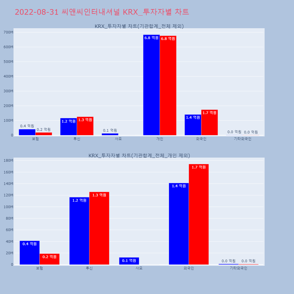 | 투자기관 | 거래량_매도 | 거래량_매수 | 거래량_순매수 | 거래대금_매도 | 거래대금_매수 | 거래대금_순매수 |
