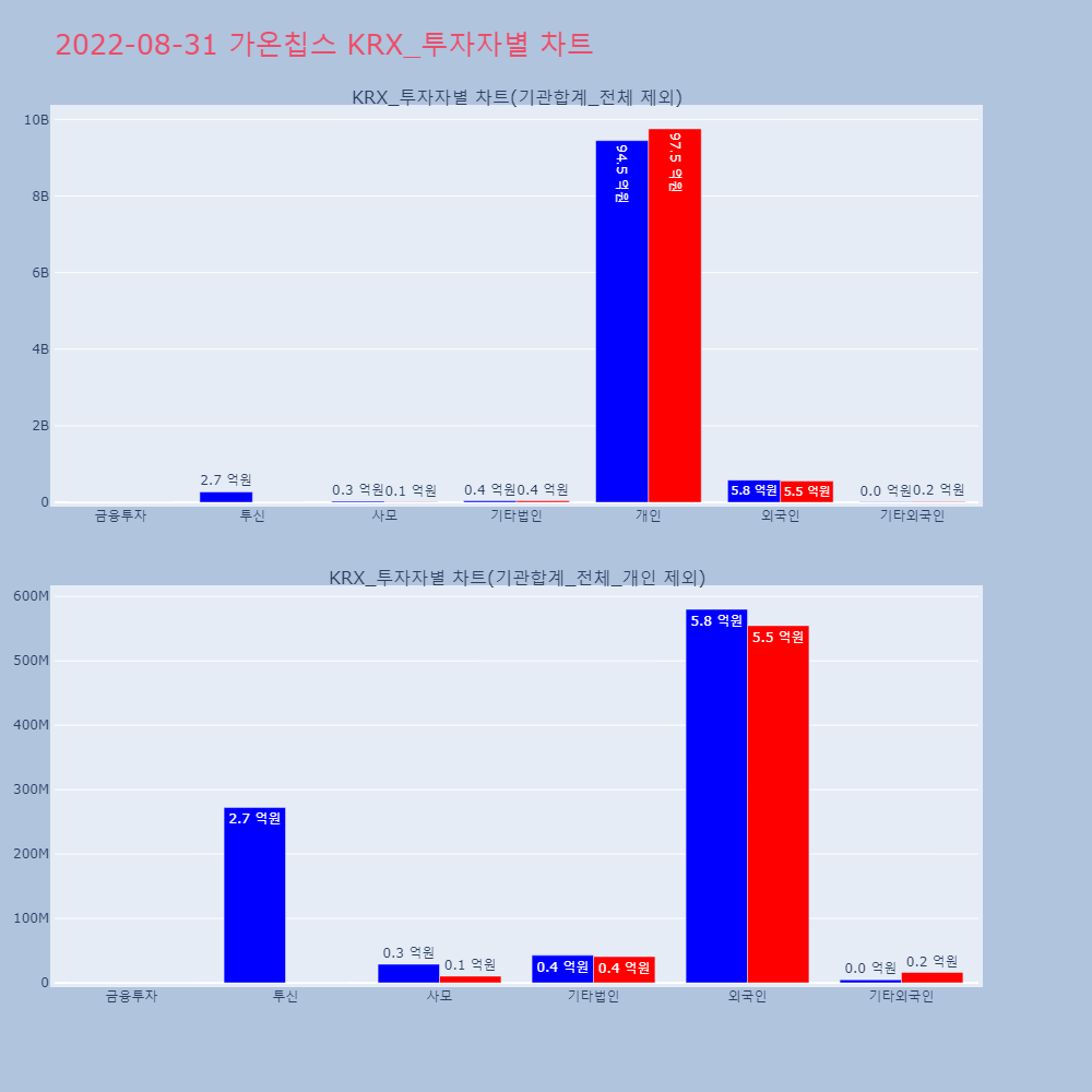 | 개인 | 200,544 | 198,897 | -1,647 | 35,351,788,500 | 35,079,409,000 | -272,379,500 |