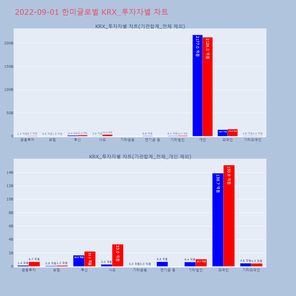 | 투자기관 | 거래량_매도 | 거래량_매수 | 거래량_순매수 | 거래대금_매도 | 거래대금_매수 | 거래대금_순매수 |
