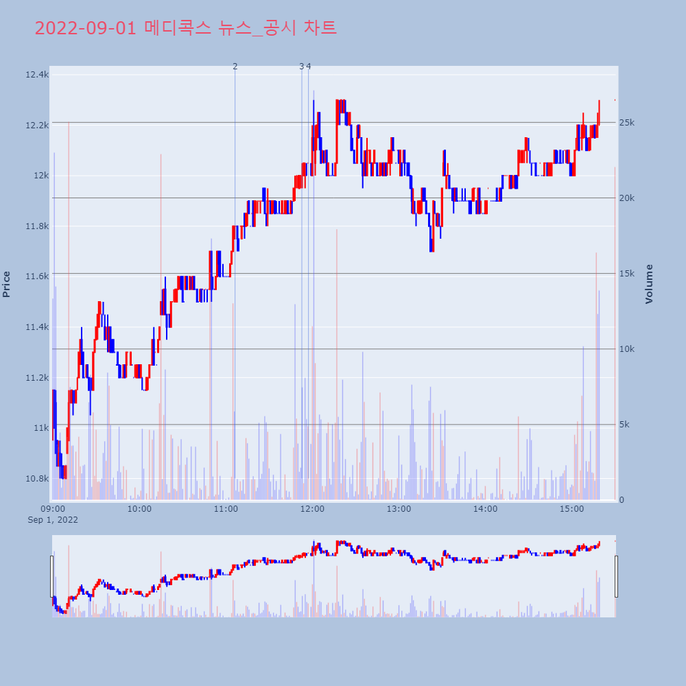 | 3 | '메디콕스' 52주 신고가 경신, 단기·중기 이평선 정배열로 상승세◆ 차트 분석- 단기·중기 이평선 정배열로 상승세 | 한경/증권 | 메디콕스 | 2022-09-01 11:52:45 |