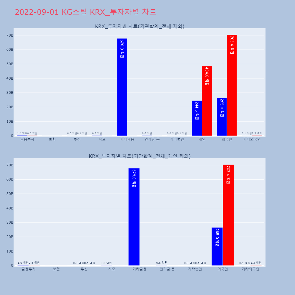 3 | 01일, 외국인 거래소에서 KG스틸(-12.35%), KODEX 200선물인버스2X(+4.82%)외국인 투자자는 01일 거래소에서 KG스틸, KODE | 한경/증권 | KG스틸 | 2022-09-01 18:35:45 |