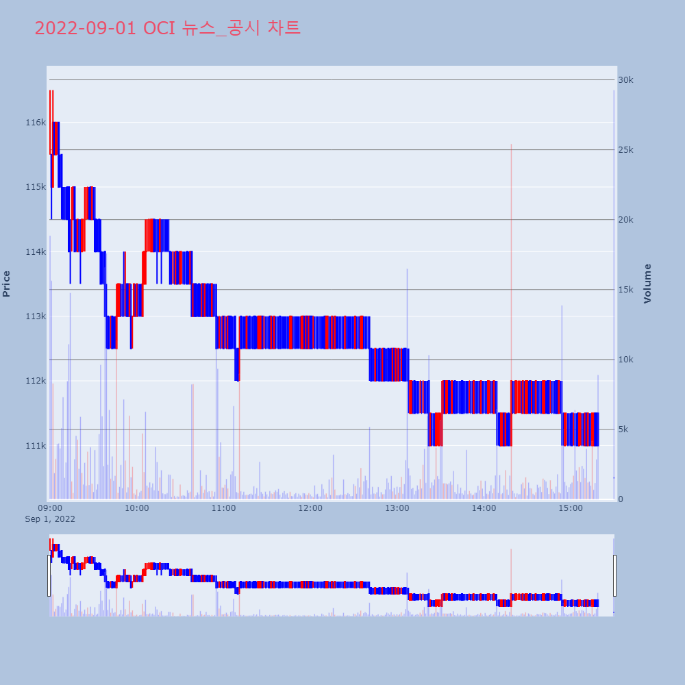 | 15 | [장중수급포착] 대명에너지, 외국인 22.44만 주 대량 순매수... 주가 +20.9[서울=뉴스핌] 로보뉴스 = 01일 11시 30분 현재 | 뉴스핌 | 대명에너지 | 2022-09-01 11:30:28 |