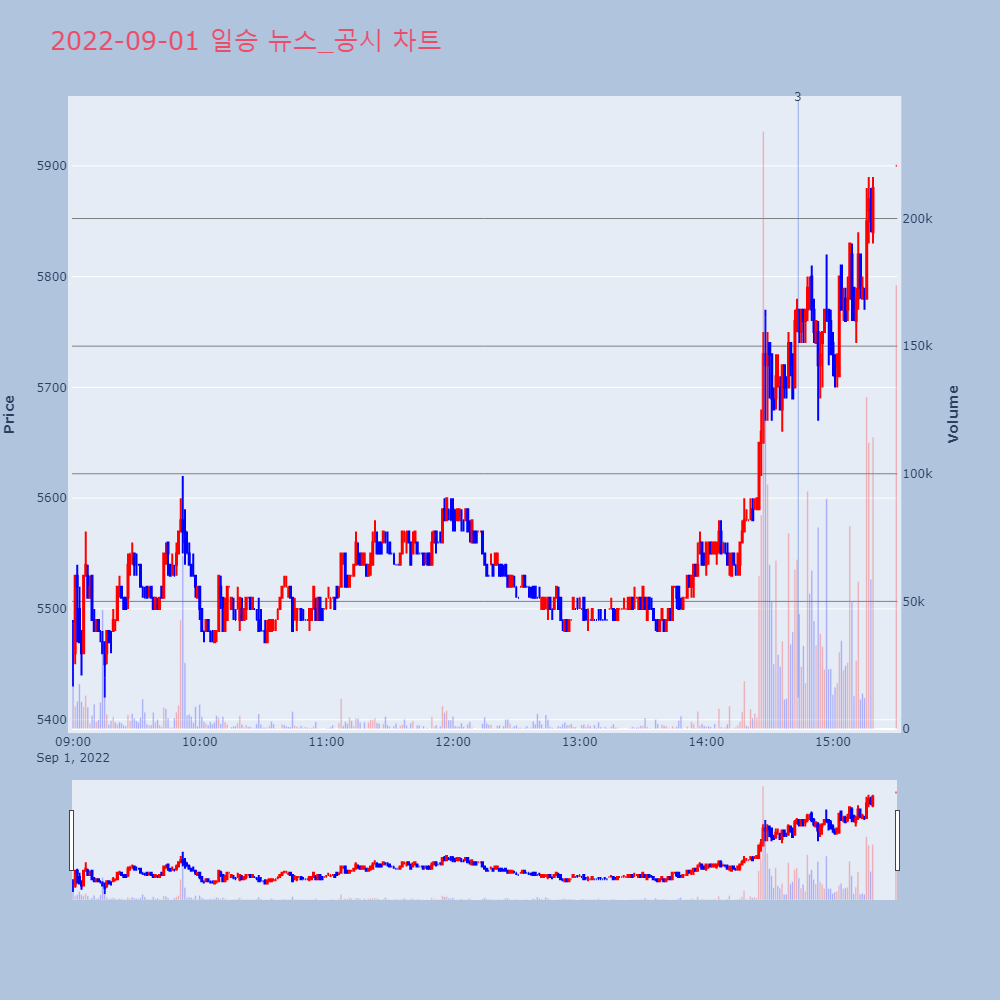 | 2 | 일승, +7.52% 상승폭 확대일승이 상승폭을 확대하고 있다. 전일 대비 7.52% | 조선경제 | 일승 | 2022-08-31 14:35:22 |