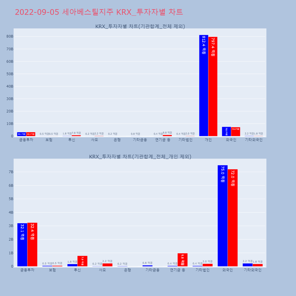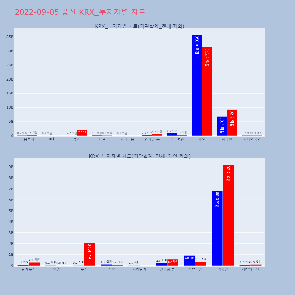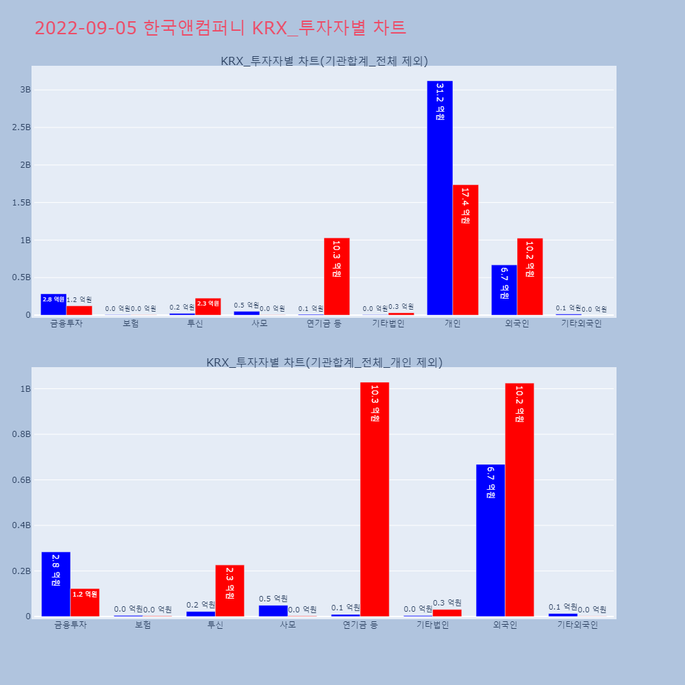 | 투자기관 | 거래량_매도 | 거래량_매수 | 거래량_순매수 | 거래대금_매도 | 거래대금_매수 | 거래대금_순매수 |