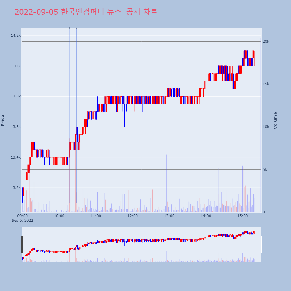 한국앤컴퍼니(000240) +7.22%[종가: 14,100원]