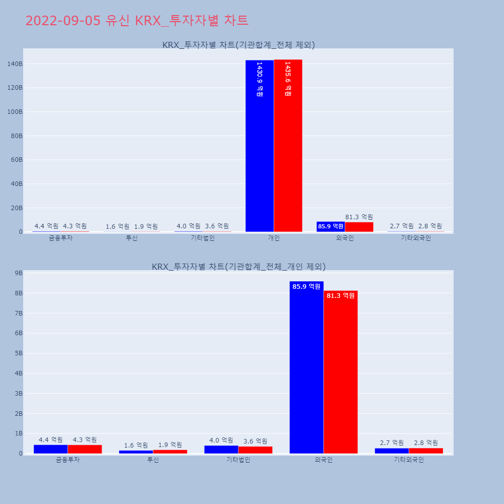 | 투자기관 | 거래량_매도 | 거래량_매수 | 거래량_순매수 | 거래대금_매도 | 거래대금_매수 | 거래대금_순매수 |