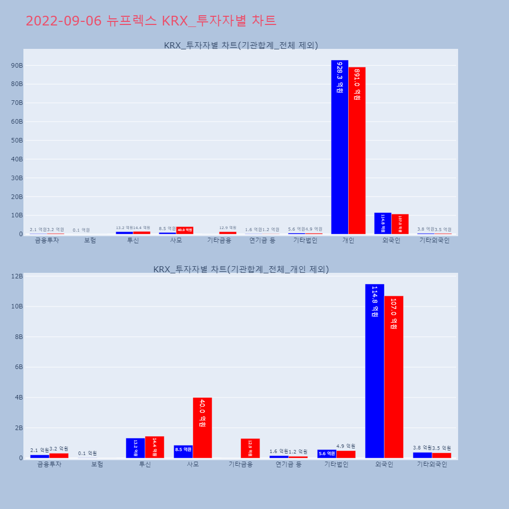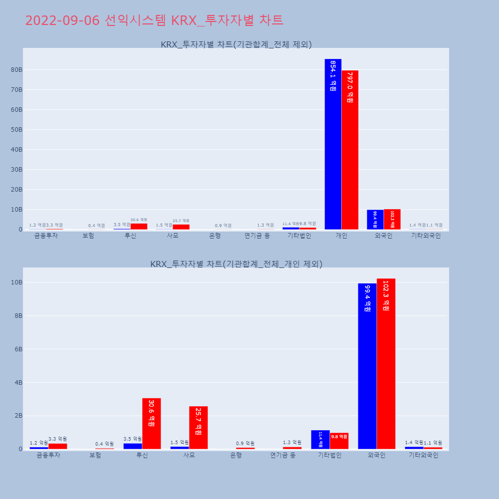 | 투자기관 | 거래량_매도 | 거래량_매수 | 거래량_순매수 | 거래대금_매도 | 거래대금_매수 | 거래대금_순매수 |