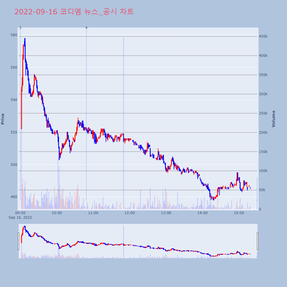 3 | 코디엠, 0.00% VI 발동코디엠이 VI가 발동했다. 현재 665원에 거래되고 있 | 조선경제 | 코디엠 | 2022-09-16 09:00:06 |