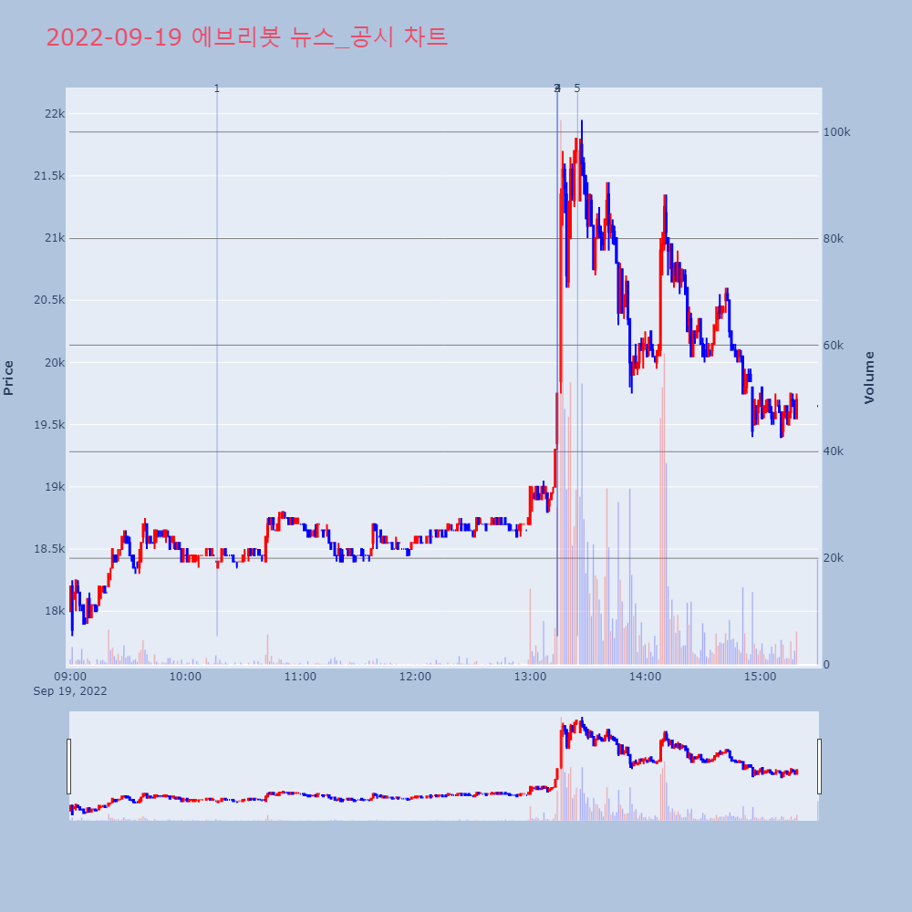 | 4 | 에브리봇, +10.34% VI 발동에브리봇이 VI가 발동했다. 전일 대비 10.34% 상 | 조선경제 | 에브리봇 | 2022-09-19 13:14:23 |