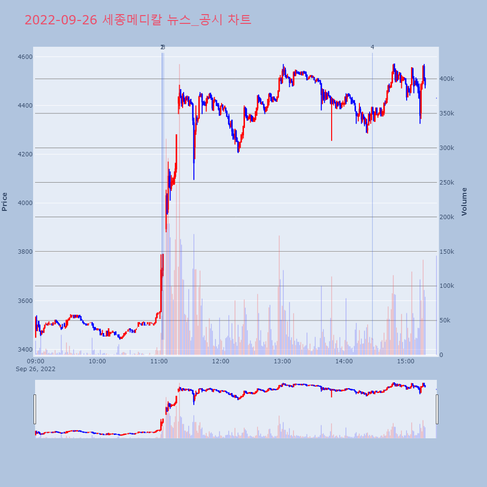 | 17 | [특징주] 세종메디칼, 카나리아바이오 주가 상승에 덩달아 21%↑[아시아경제 이민지 기자] 복강경 수술 기구 등 의료용 | 아시아경제 | 세종메디칼 | 2022-09-26 14:27:42 |