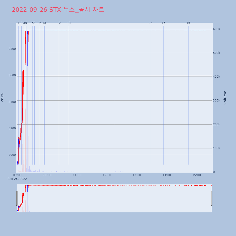 | 2 | STX, +6.93% VI 발동STX가 VI가 발동했다. 전일 대비 6.93% 상승한 | 조선경제 | STX | 2022-09-26 09:08:41 |