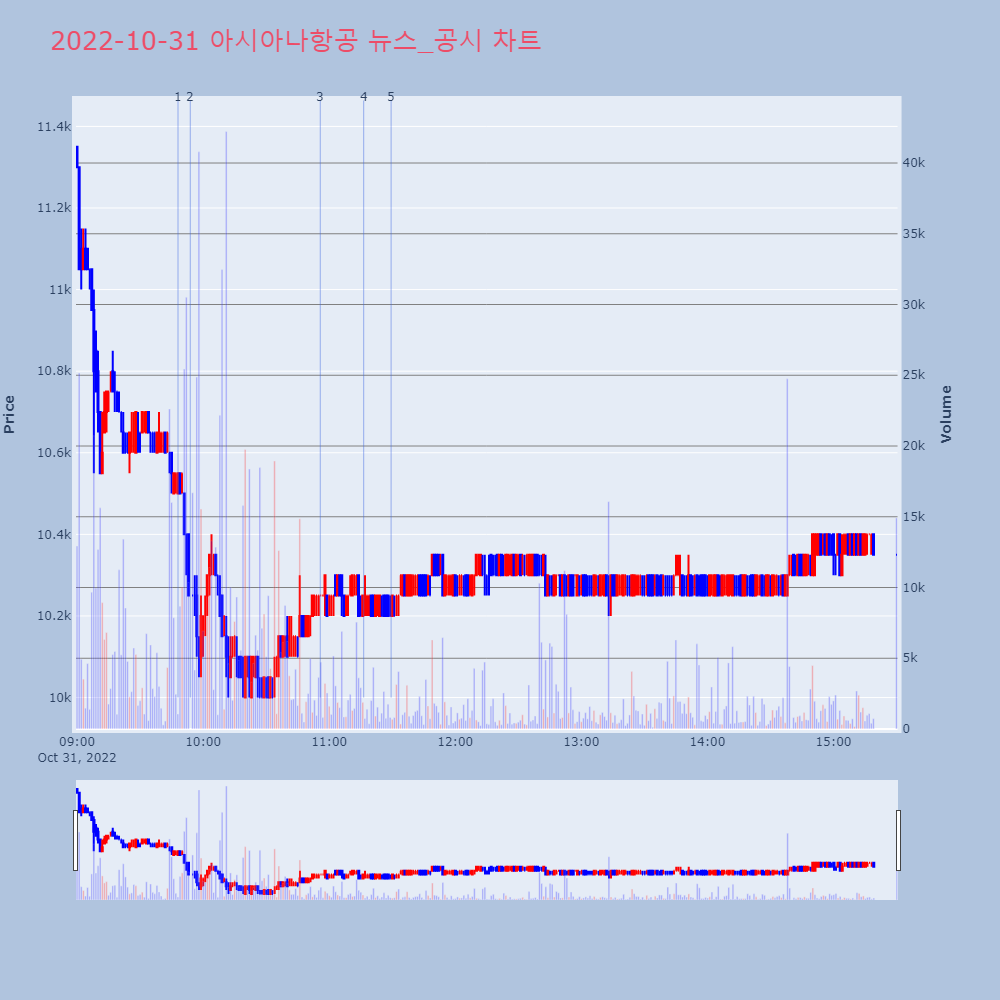 2 | 아시아나항공, -8.85% VI 발동아시아나항공이 VI가 발동했다. 전일 대비 8.85% | 조선경제 | 아시아나항공 | 2022-10-31 09:53:53 |