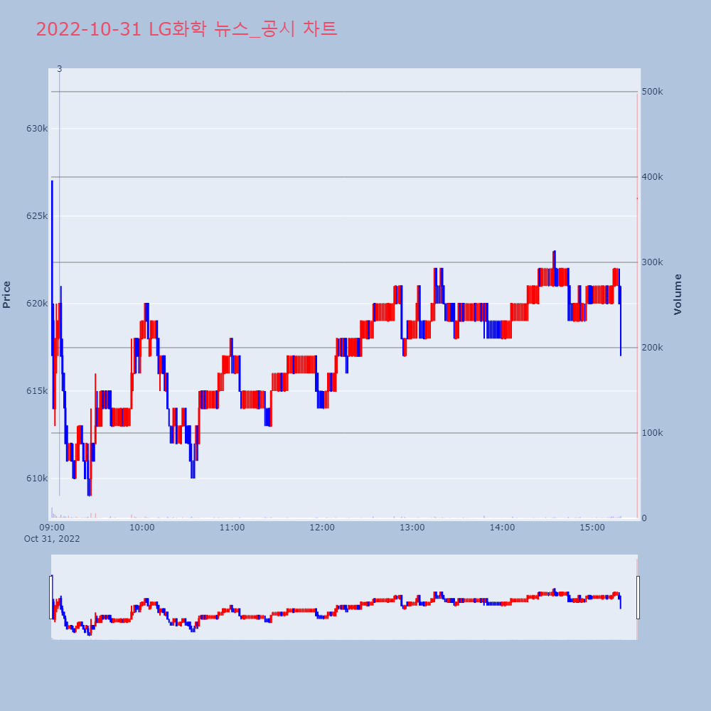 | 3 | [업종 대표주] 화학: LG화학 +0.65% 출발화학 업종 대표주인 LG화학이 0.65% 상승한 619 | 조선경제 | LG화학 | 2022-10-31 09:05:04 |