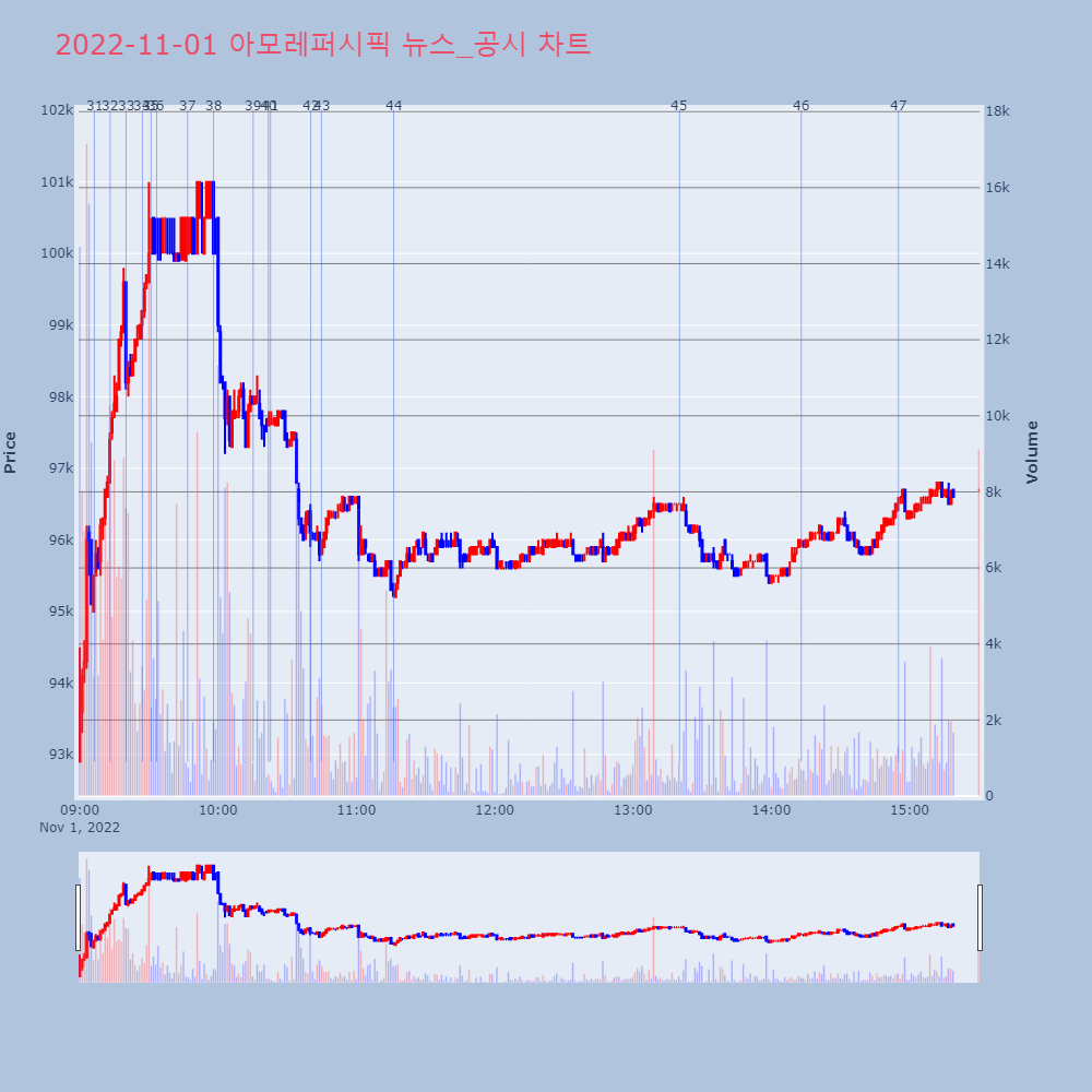 48 | [내일 장 GO&STOP] 아모레퍼시픽, 어닝쇼크에도 주가 강세... 악재 선반영?오늘 급등했던 종목은 왜?오늘의 HOT! 종목은?▶ 진 | MTN | 아모레퍼시픽 | 2022-11-01 17:07:41 |