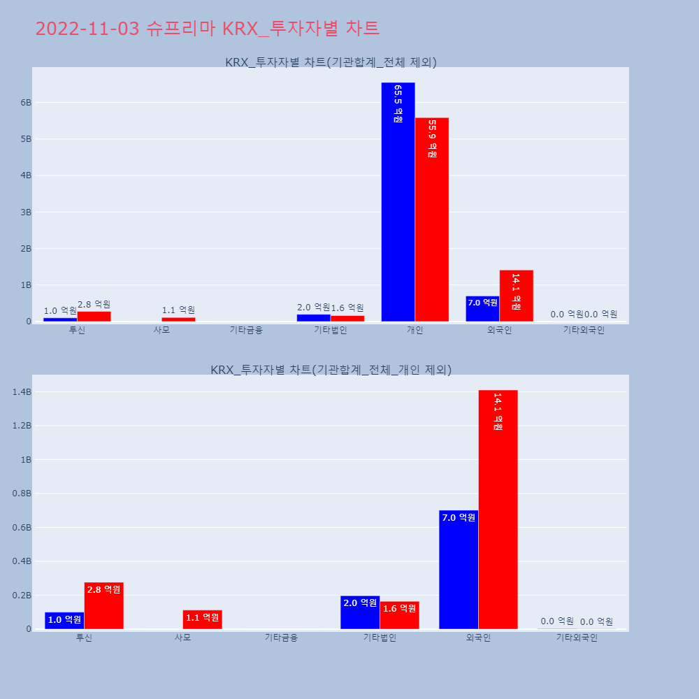| 투자기관 | 거래량_매도 | 거래량_매수 | 거래량_순매수 | 거래대금_매도 | 거래대금_매수 | 거래대금_순매수 |