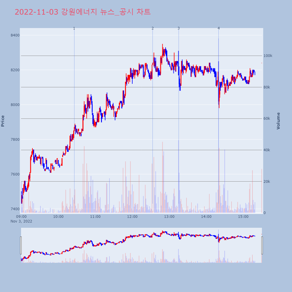 8 | 포스코케미칼, +6.57% VI 발동포스코케미칼이 VI가 발동했다. 전일 대비 6.57% | 조선경제 | 포스코케미칼 | 2022-11-03 12:08:57 |