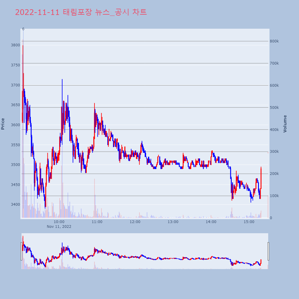 2 | 태림포장, +8.01% VI 발동태림포장이 VI가 발동했다. 전일 대비 8.01% 상승 | 조선경제 | 태림포장 | 2022-11-10 14:44:02 |