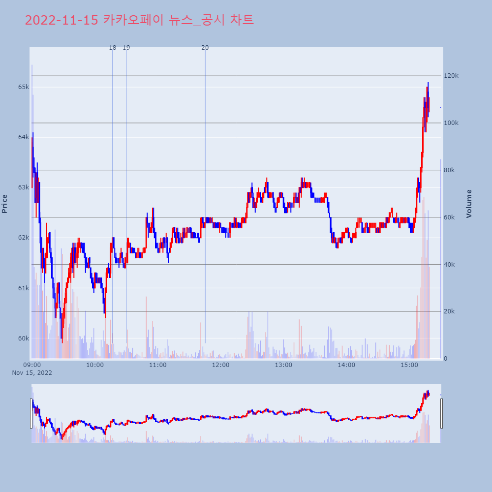 5 | 카카오페이, 인플레이션 정점 확인 안도감에 2거래일 연속 '급등'인플레이션 정점이 확인됐다는 안도감에 카카오페이 주가 | 한경/증권 | 카카오페이 | 2022-11-14 09:32:51 |