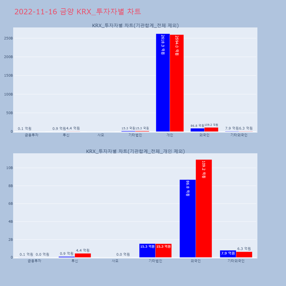 | 투자기관 | 거래량_매도 | 거래량_매수 | 거래량_순매수 | 거래대금_매도 | 거래대금_매수 | 거래대금_순매수 |