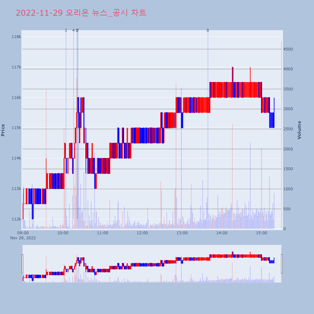 2022. 11. 29 특징주 오비고 오리온 덱스터 파마리서치 세방전지 현대건설 기아 코리안리 CJ 솔고바이오
