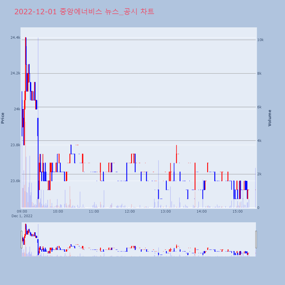 | 9 | [시간외Y] 중앙에너비스, 흥구석유, 한국석유 '상한가'[프라임경제] 재테크와 투자, 부동산 등에 대한 관심이 | 프라임경제 | 중앙에너비스 | 2022-12-01 18:20:50 |