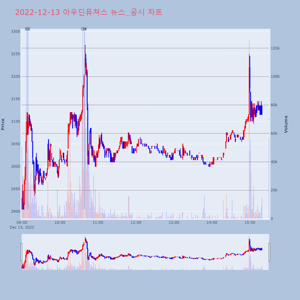 아우딘퓨쳐스(227610) +7.07%[종가: 3,105원]